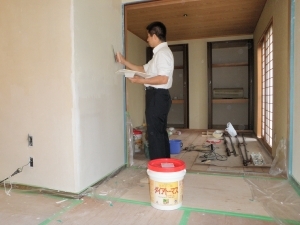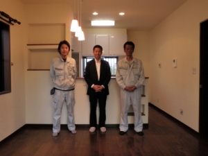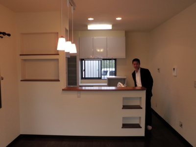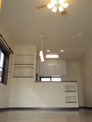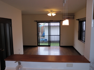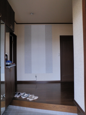 新婚のO様にふさわしいLDKづくりをしました。 奥様の使い勝手を考慮したキッチンづくりは入念な打合せを行いました。 ご自身で健康塗り壁「ダイアトーマス」を塗っていただきました。ニオイのなく塗り易いので楽しんで塗っていただきました。 玄関には除湿効果が高く、スタイリッシュなINAXのタイル、エコカラットを施しました。