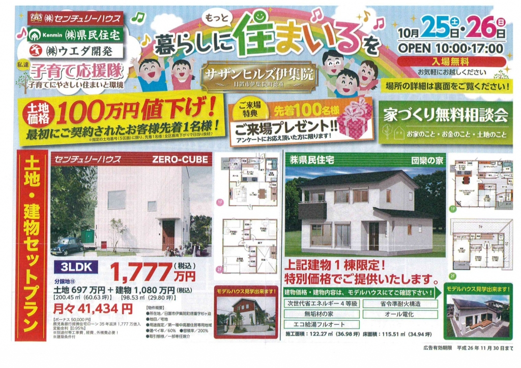 住まいるフェアを開催致します! 子育てに適したサンヒルズ伊集院をご紹介します。 家を建てたいけど、どんな家を造ればいいの? 住宅にとって大事なことは? 価格はどうなの?? 専門の担当者が住宅の疑問にお答えします!! ぜひご来場ください!(^^)!