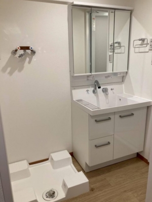 コストを抑え、なおかつ収納力のある洗面化粧台をおすすめしました。洗濯パンも取り替えました。
