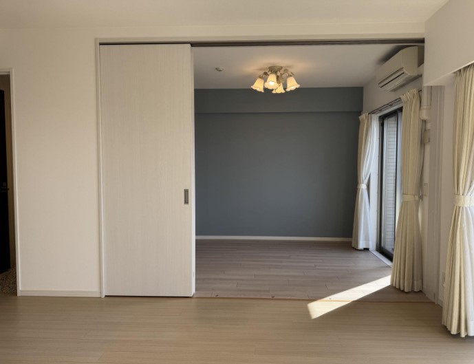 和室を洋室へ変更しLDKと一体化させつつ、必要な時に空間を仕切れる柔軟な設計へ。