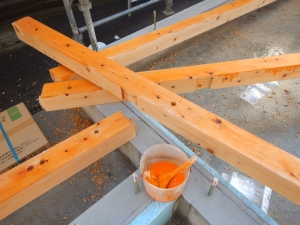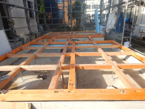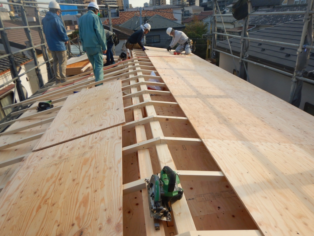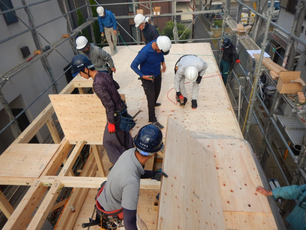 木造2階建新築工事が進行中でございます。 基礎工事~上棟まで 【建方 軸組】