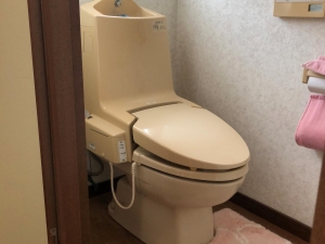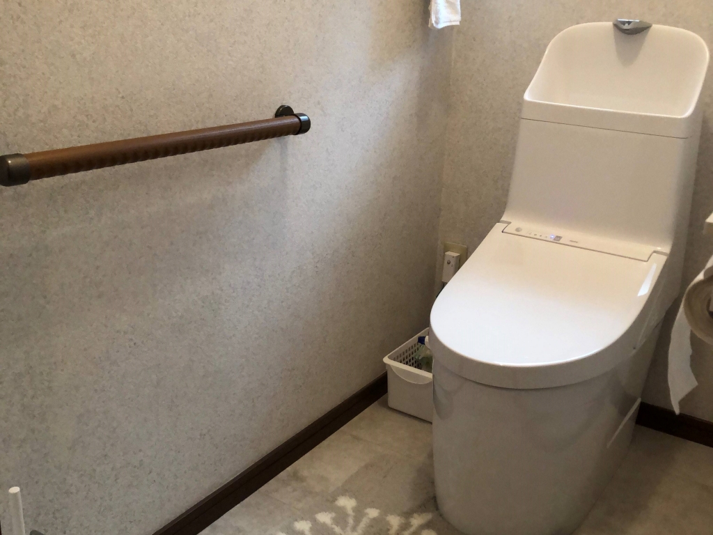 年数が経ち調子が悪くなったので取り替えることになりましたが、同じ時期の商品なので洋式トイレ2箇所と、男子用トイレ1箇所の合わせてトイレ3部屋を取り替えることになりました。床のお手入れをしやすく、手すりも取り付けました。