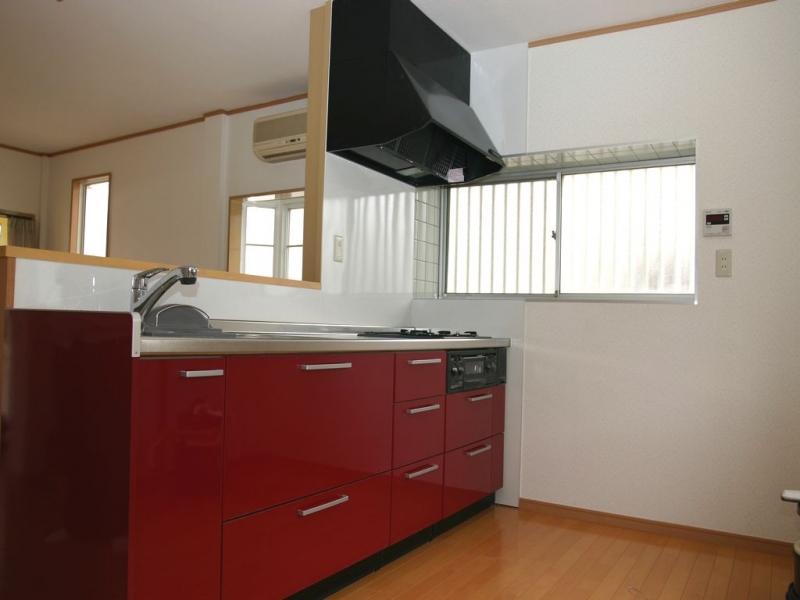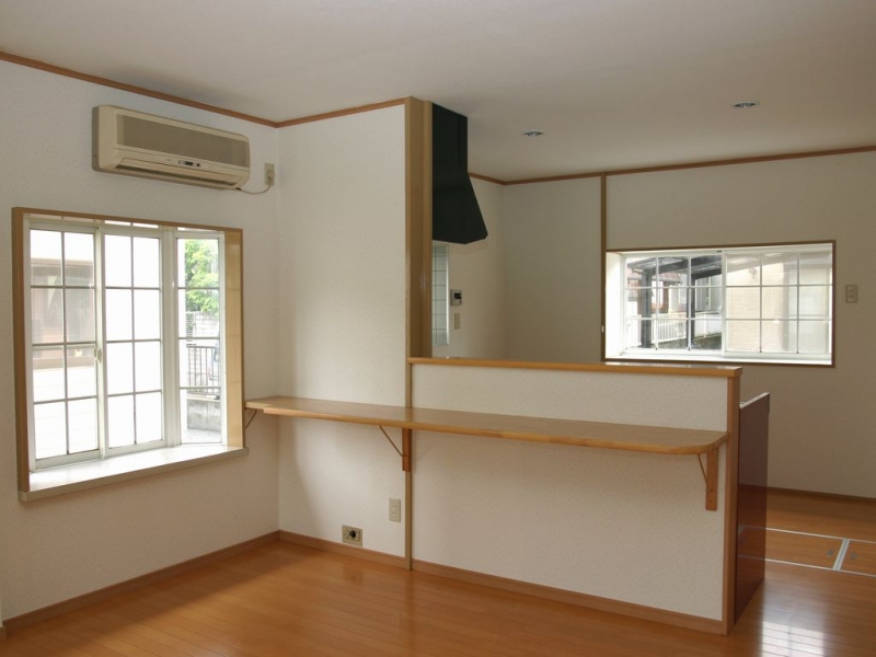 【リビング&ダイニング】対面式キッチン。カウンターは必要に応じて折りたたみ可能です。