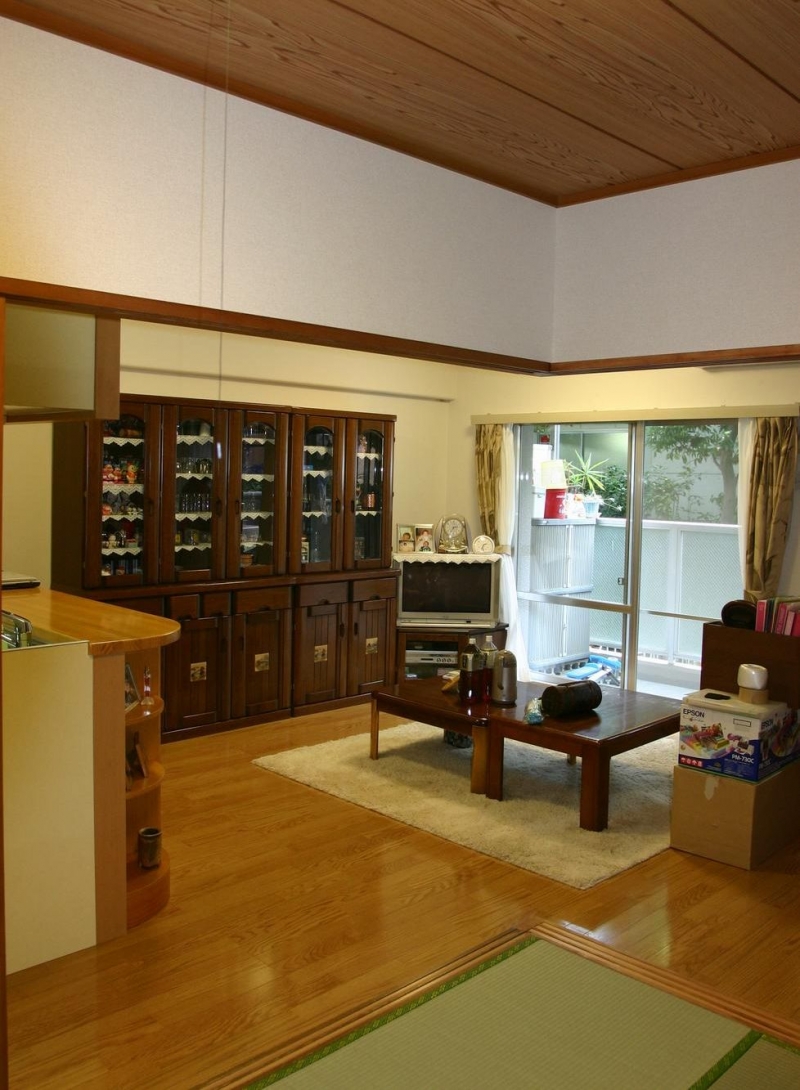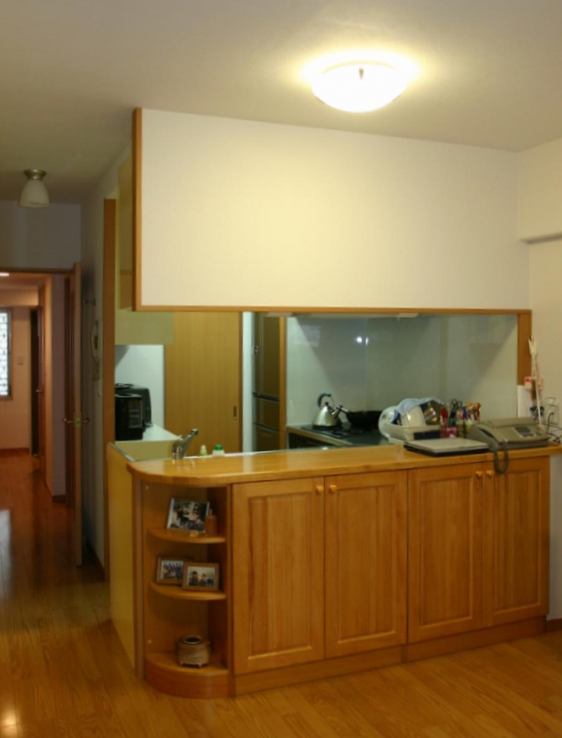 3LDKマンションの全面改装です。お子様も独立し、夫婦二人の今後の生活のためにとリフォームを決意。間仕切を取って部屋数を少なくし、広々としたリビングダイニングに。キッチンは独立した部屋から対面式にして、収納もたっぷりと設けました。