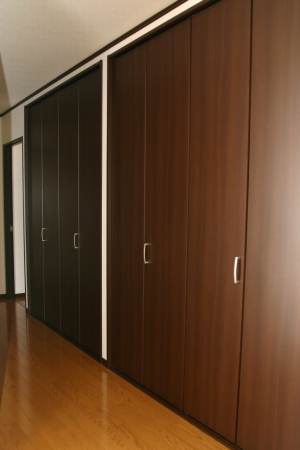 【廊下収納】家族が過ごす年月とともに増えてゆく、思い出の品々等をすっきり整理できるよう、たっぷりの収納スペースを確保。