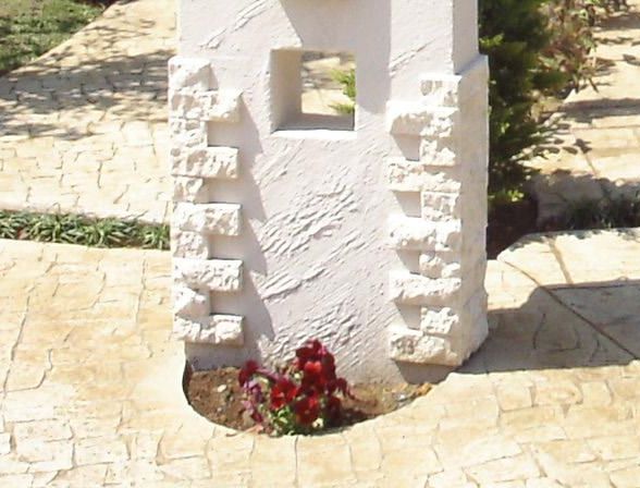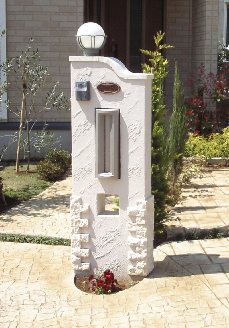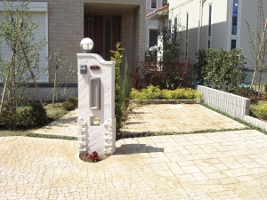 門柱の塗装部分や、レンガを貼ったように見える部分もコンクリートで出来ています。お花のスペースがアクセントに。