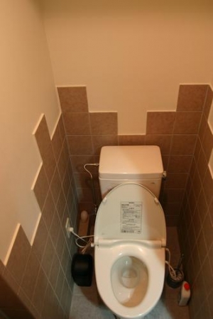 【トイレ】さっぱりとした清潔感のあるトイレ。脇にはスタッフ用の収納も完備してあります。