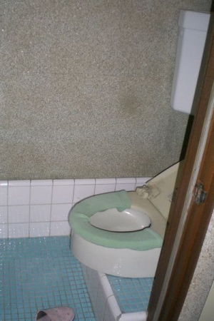 【工事前】段差のある和式トイレに、簡易型の洋便座を設置して使用されていました。