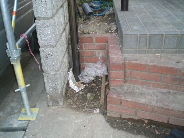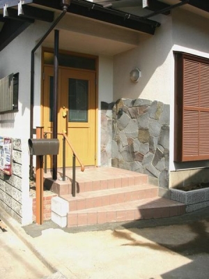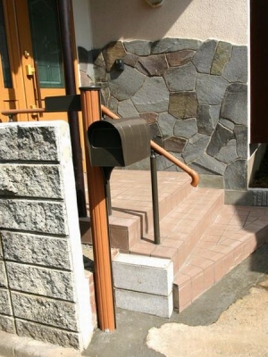 | 【工事費用】 | 約25万円(アコーディオンドア撤去・階段下地・タイル貼り付け・ブロック補修・新規ポスト設置) |