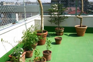 日当たりの良い屋上ですから、趣味の植木を楽しむスペースとしても活用できるように水場を設置しました。