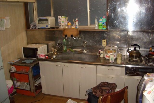 以前のキッチンは動線も悪く、ついつい乱雑になりがち。年齢を重ねたご家族には使いづらい生活動線でした。