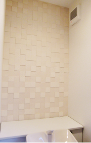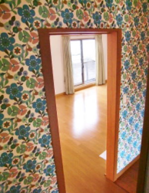 壁紙の貼り替えや猫用の通用口の補修を含めた全面改装です。トイレや洗面室はお客様に