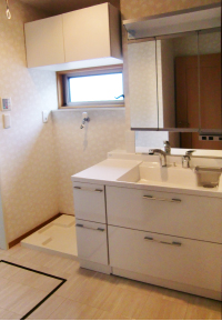 | 【使用材料】 | ビルトインガスコンロ:リンナイ、食器洗い乾燥機:パナソニック、1階トイレ:TOTO GG1800、2階トイレ:パナソニック:アラウーノ、1階洗面:LIXIL ラルージュ、2階洗面:ヤマハ アフェット、エコカラット 他 |