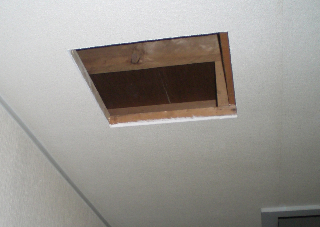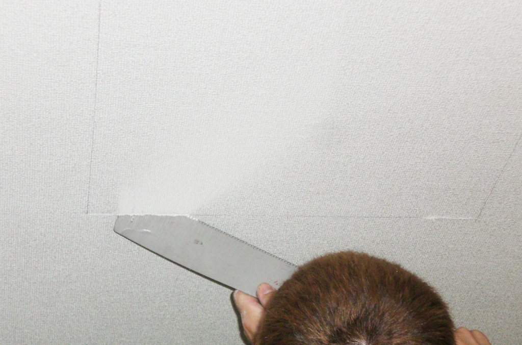 天井裏からネズミの足音がすることから、リビング天井に点検口を設けてネズミ駆除を行いました。