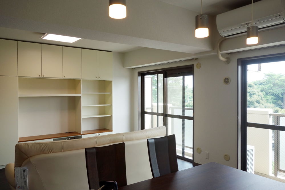 ☆工事完了日:2013/8/5 ☆リフォーム内容:間取変更・浴室・洗面室工事 ☆金額:3,010,000円 【お客様の声】 中古マンションを購入し、クロス張替と浴室・洗面の交換をお願いしました。白と黒を基調とした内装・サニタリーは木目調でお願いしました。 【プランナーより】 洋間6帖と和室6畳をつなげ12帖のリビングに改装いたしました。水廻りも落ち着いたウッド調のデザインを選択し、お住まい全体がシンプルでシックな装いで統一されました。
