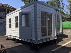 新潟県にてトレーラーハウスのスライドアウトタイプを設置中