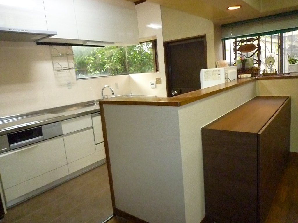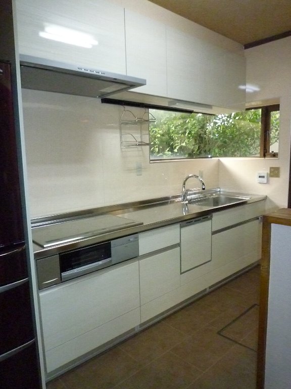 築35年くらいの戸建のキッチンリフォームです。 今回は配置はそのままで、キッチン横幅を長くして、収納を増やしました。白のキッチンにしましたので、以前よりもずっと明るい印象になりました。食洗い機、IHヒーター、昇降ラックなども付き、とても使いやすくなりました。
