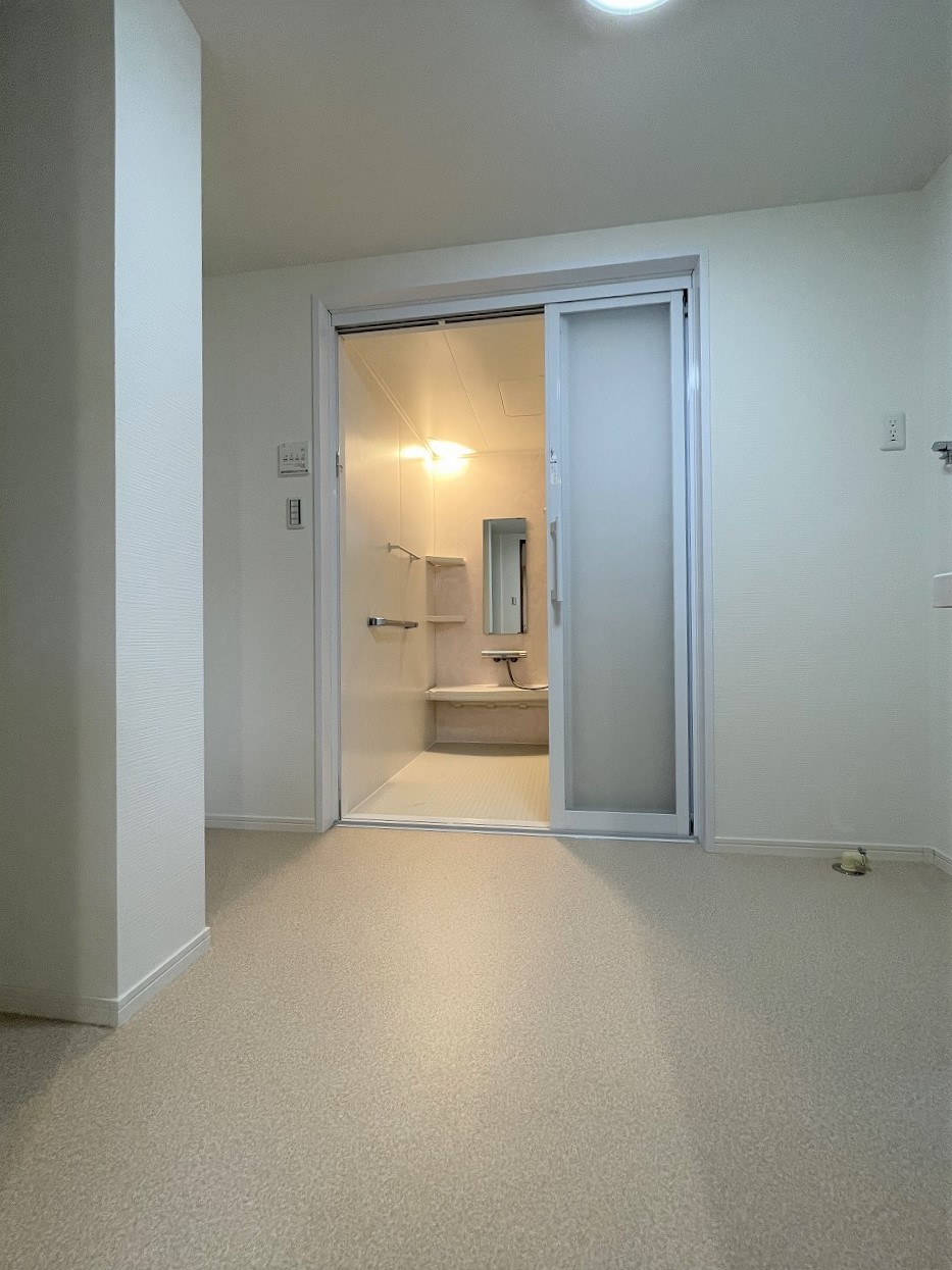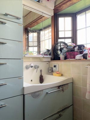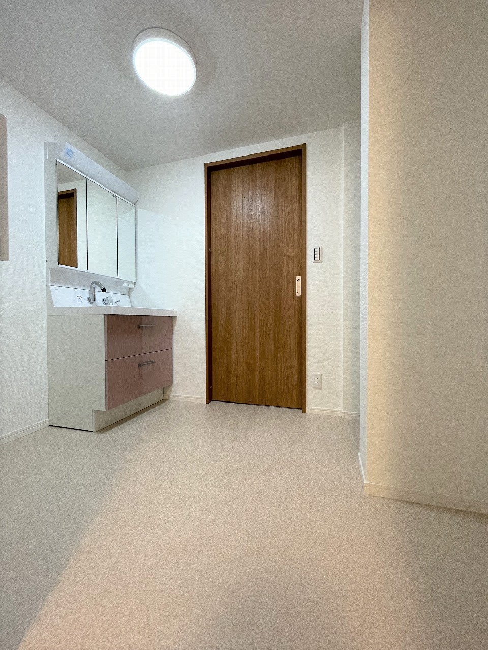 新たに洗面室をつくり、洗面化粧台交換、壁・天井のクロス貼替え、床をクッションフロアに貼替えました