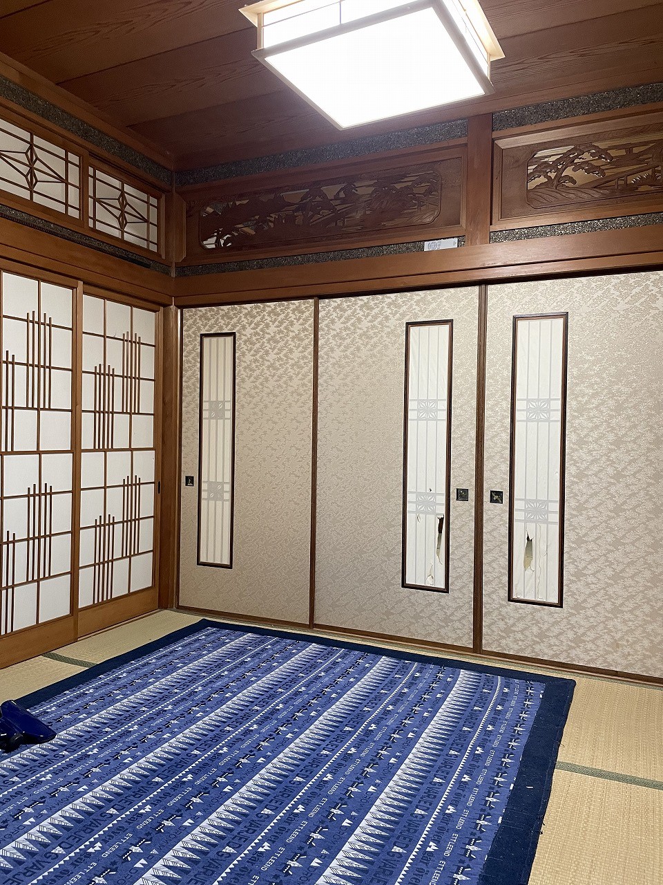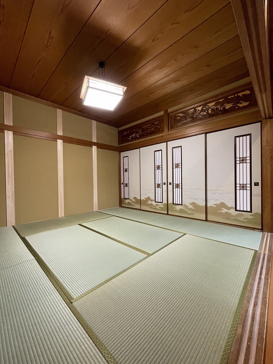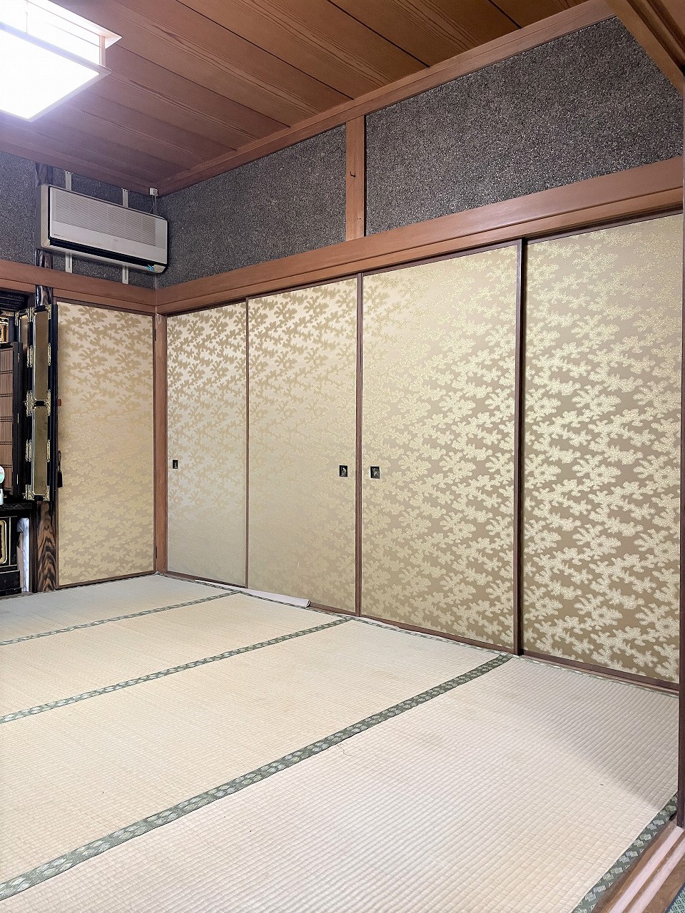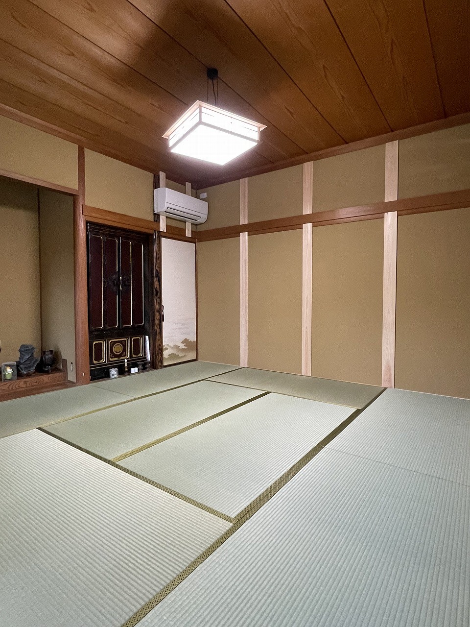 和室の壁ジュラク塗替え、畳を新畳に交換、襖を貼替えました。