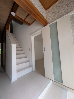 外壁貼替・階段架け替え・外窓交換・内装貼替をしました