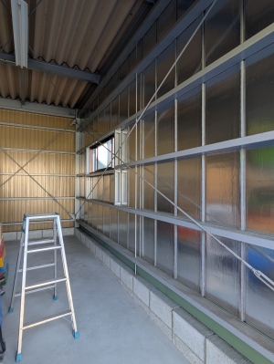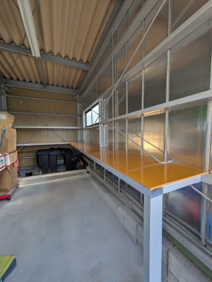 倉庫に棚を設置しました