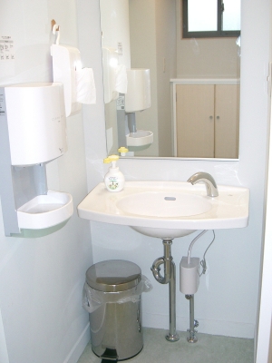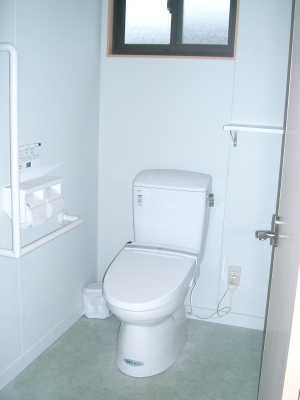 男女別と分けたトイレ内部はユッタリとしたスペースを確保、手荷物を置ける棚など設置、また手摺など、ご年配や障害者の方にも配慮したレイアウトです。