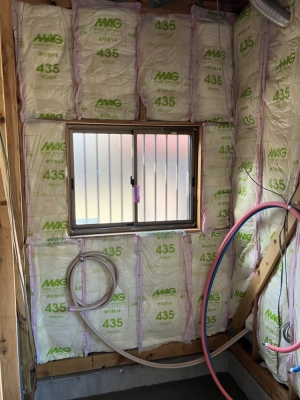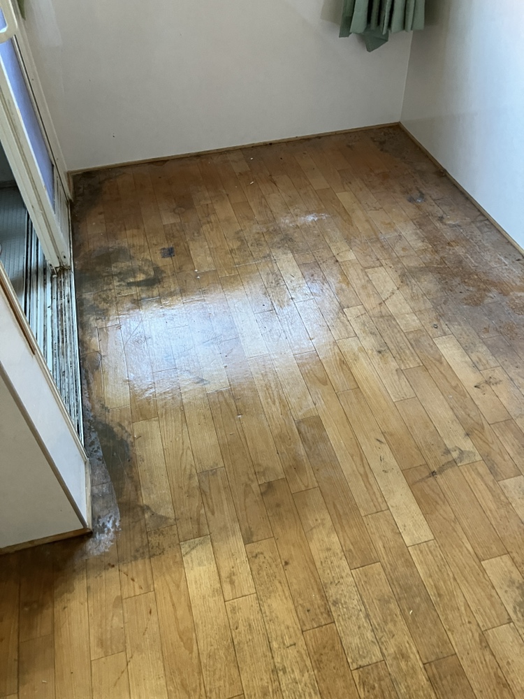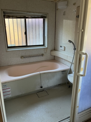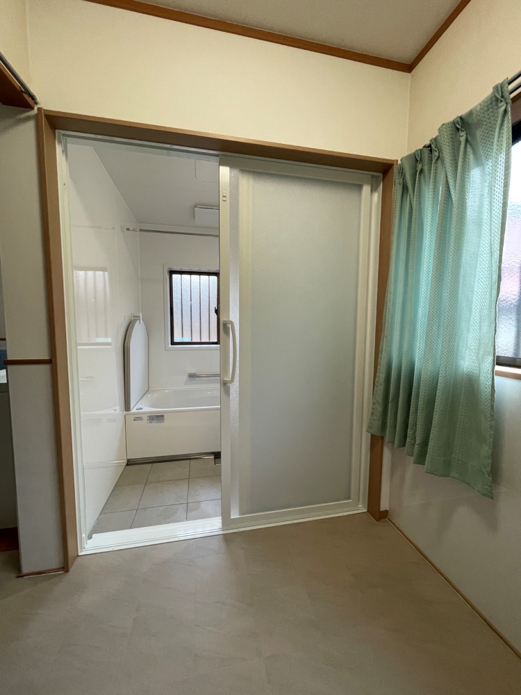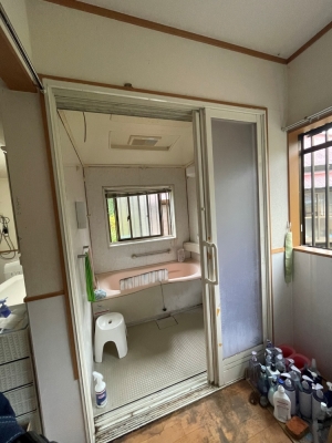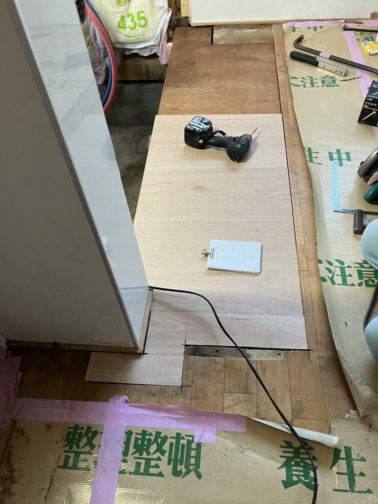 浴室入口部分の床を一部はがして、下地を作っています。このあとはCFを施工します。