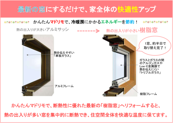 今年の暑さは例年の比ではありません! 冷房をいくらしても部屋が涼しくならないとお悩みの方、原因は窓かもしれません。 窓のアルミサッシやガラスは熱を伝えやすく、せっかくの冷気を逃してしまうのです。 そこで、熱を伝えにくい樹脂フレームのサッシ、 ガラスとガラスの間に空気層を作る複層ガラスで 断熱することで、効率よく冷房を使って節約&エコ! 一石二鳥の快適エコリフォームがおすすめです!! まずはお気軽に無料のお見積りをお申込みください♪ 多田工務店 TEL:0120-970-736