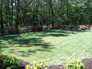 伐採、抜根を行い整地し、緑の芝生が美しいお庭へとなりました。