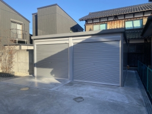 ガレージを施工させていただきました。外部収納・作業スペース・趣味の場所としても活躍します。